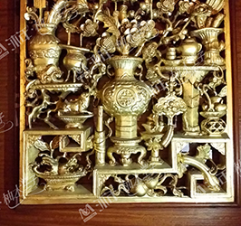 沐年出品的“緬甸柚木原木”雕花飾塊,基本為整塊整雕,其中部分大型的立體雕花是采用最初始的雕刻工藝-榫結(jié)構(gòu)組合,立體生動(dòng),經(jīng)過人工打磨(精磨)后天然的紋路和自然的光澤更顯圓潤栩栩如生。
